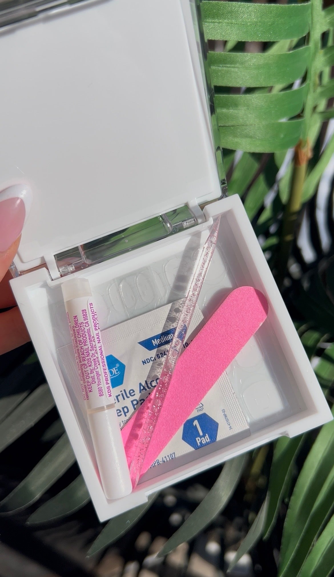 -We include everything needed for proper application with every set of nails. This includes a cuticle pusher, a mini file, mini buffer, alcohol wipe and KDS nail glue. With a step by step guide for proper application.