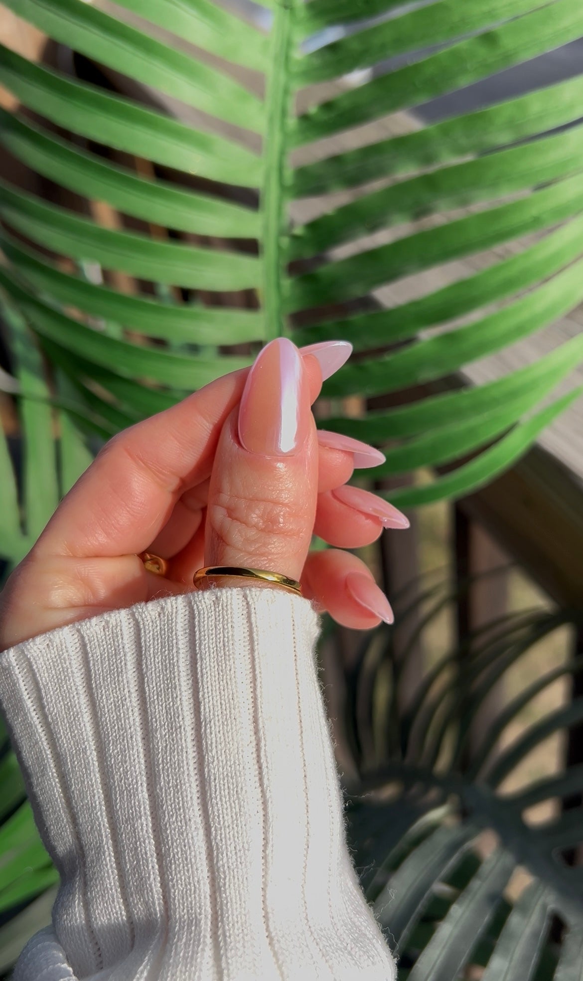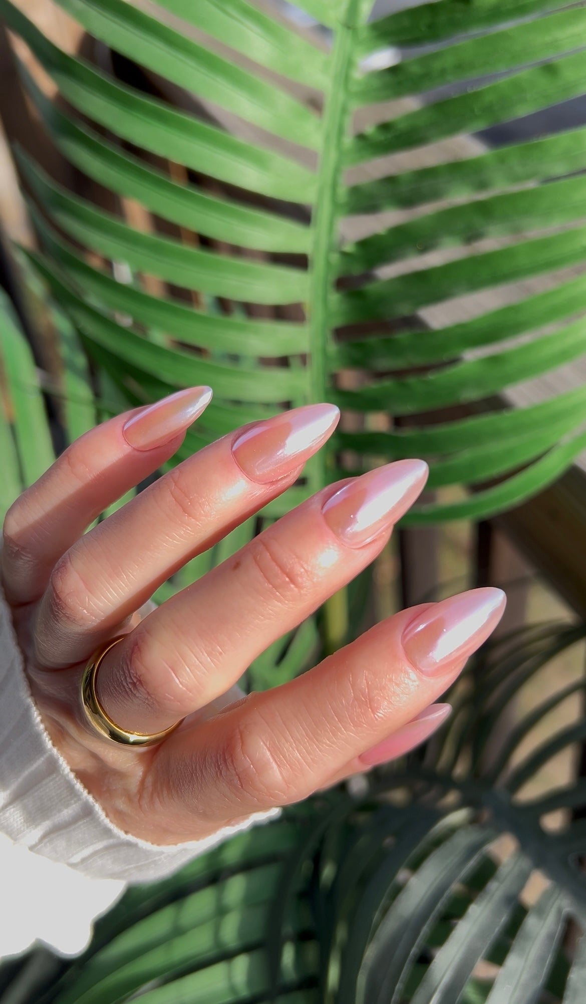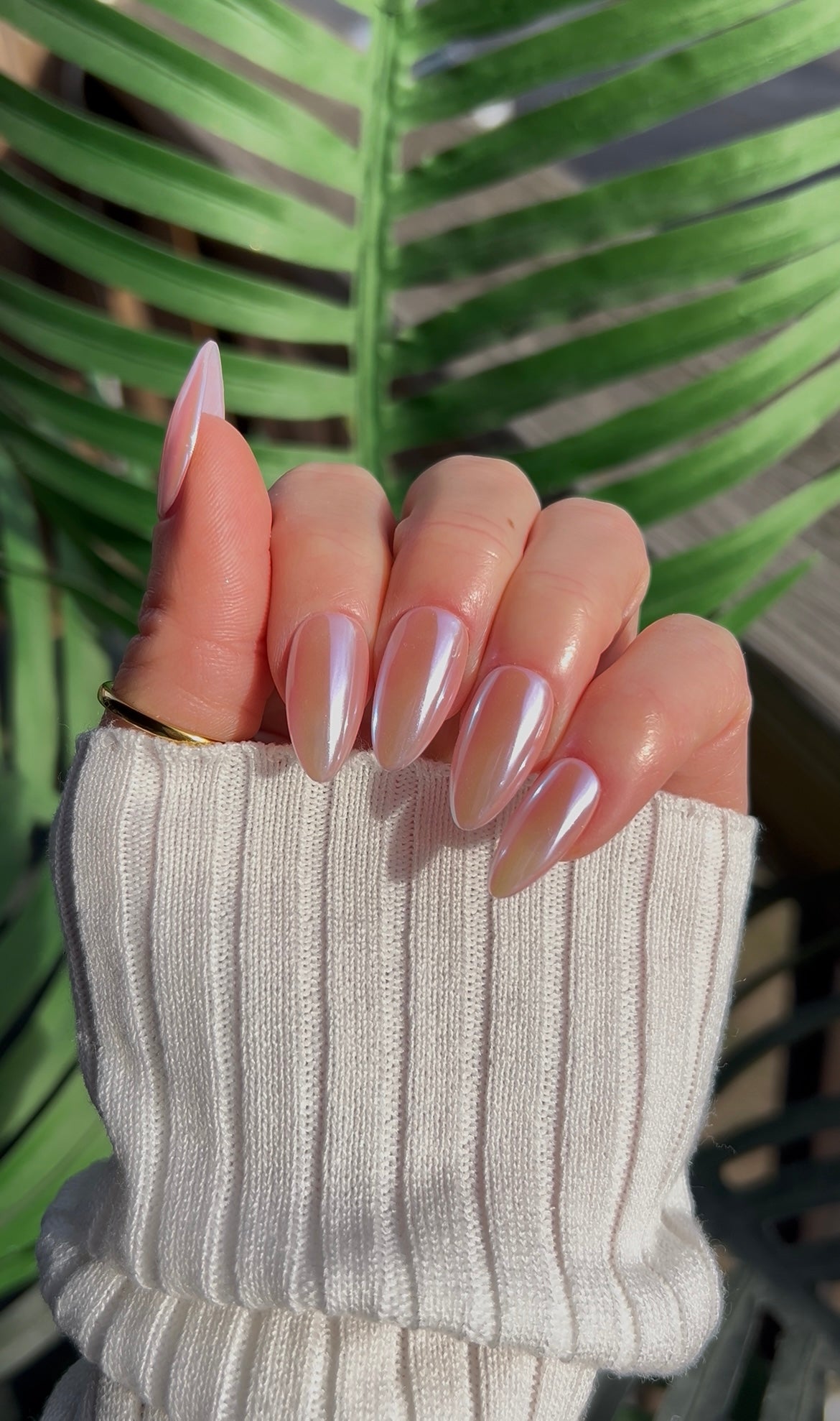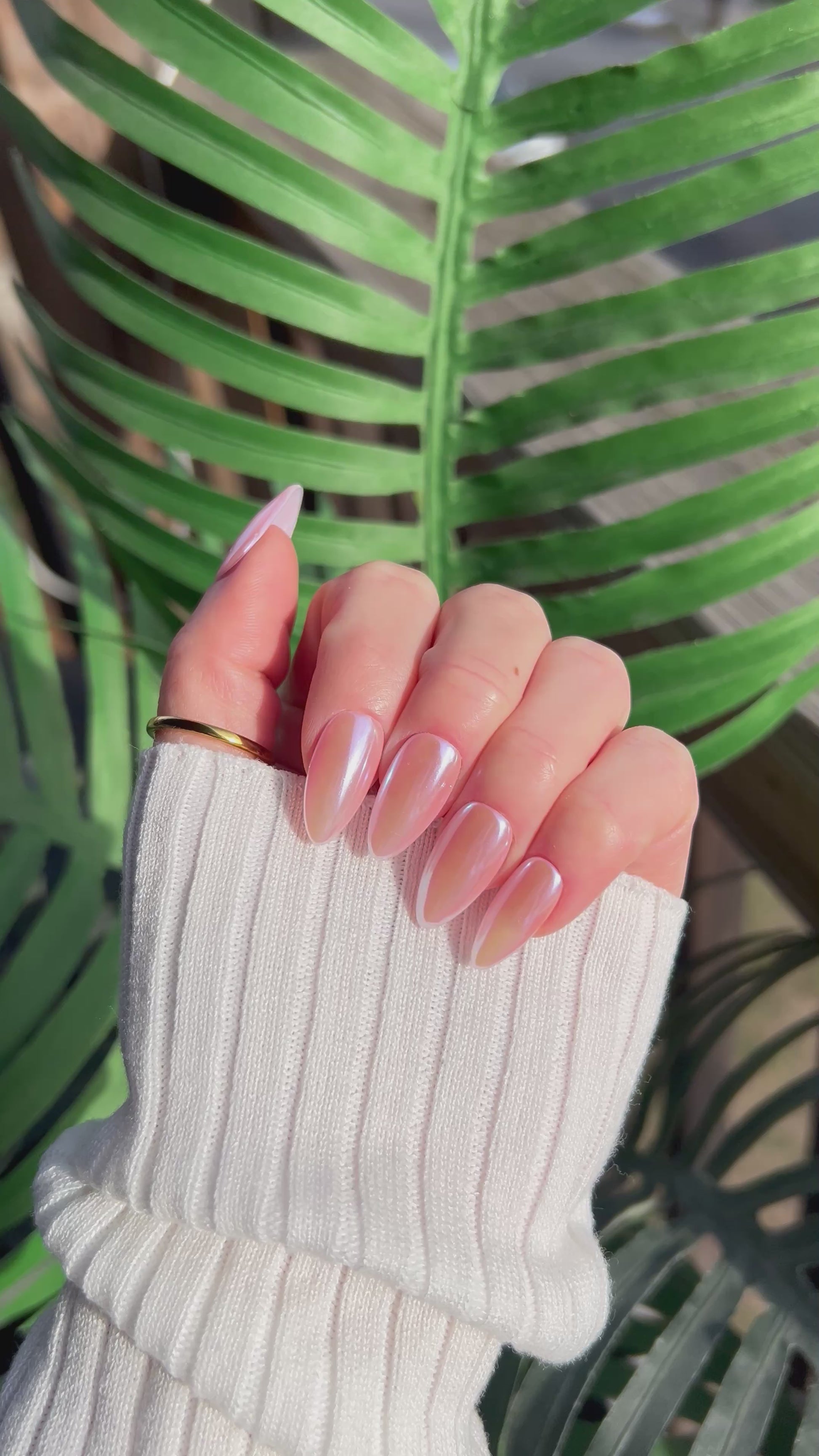 The featured set of nails pictured is in the length and shape mid almond